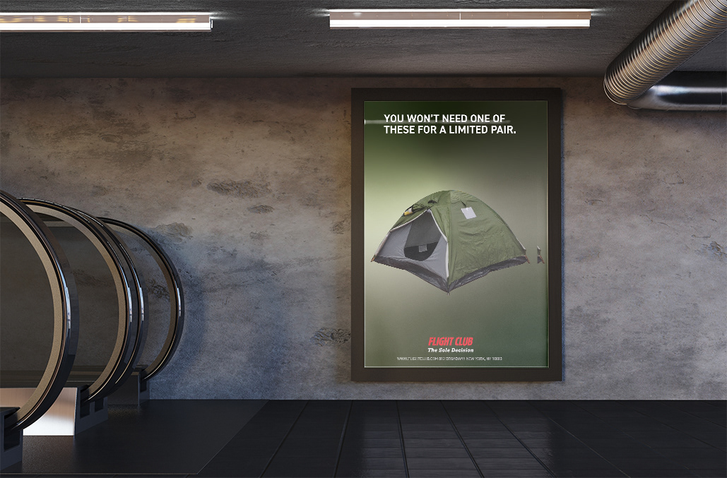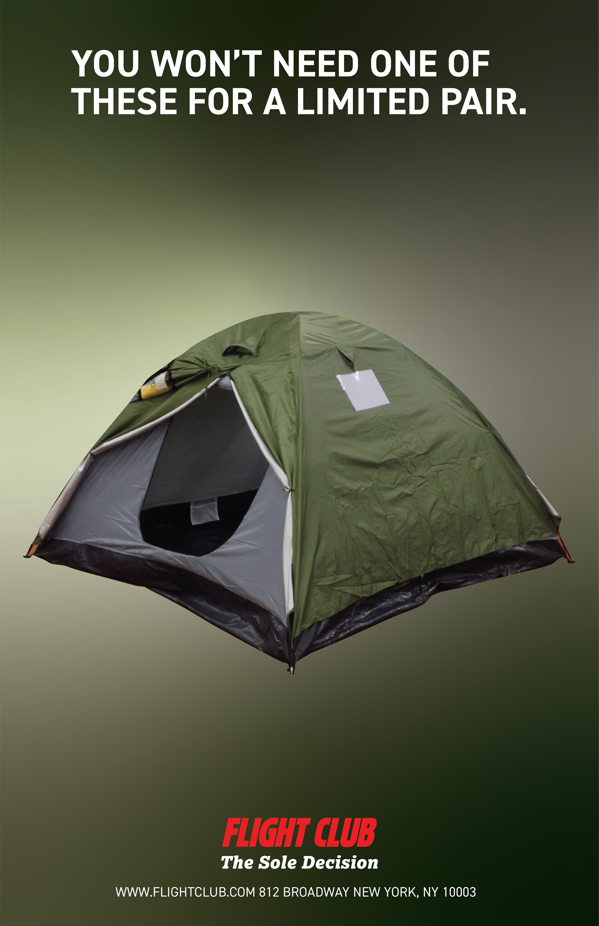 Flight Club, outdoor advertisement geared towards people that are a part of the "Sneaker Head" subculture and consumers who hate the thought of camping out for a limited/ exclusive pair of sneakers.